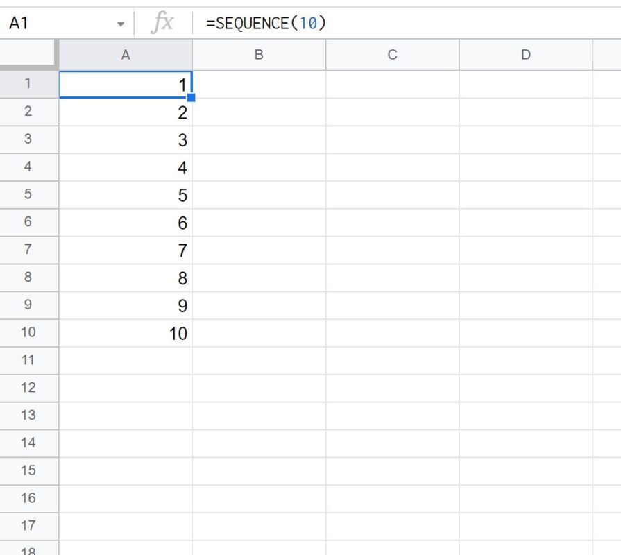 SEQUENCE(10)The following screenshot shows how to use this formula in practice: