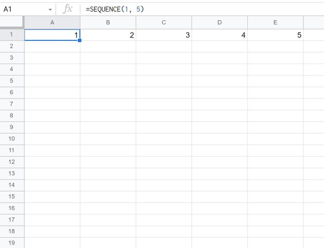 SEQUENCE(1, 5)The following screenshot shows how to use this formula in practice: